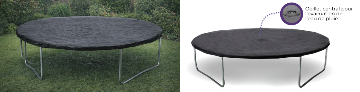 La couverture de propreté, aussi appelée bâche de protection, protège votre trampoline toute l’année. Elle préserve le tapis de saut, le coussin de protection et même le filet si vous le placez en dessous.