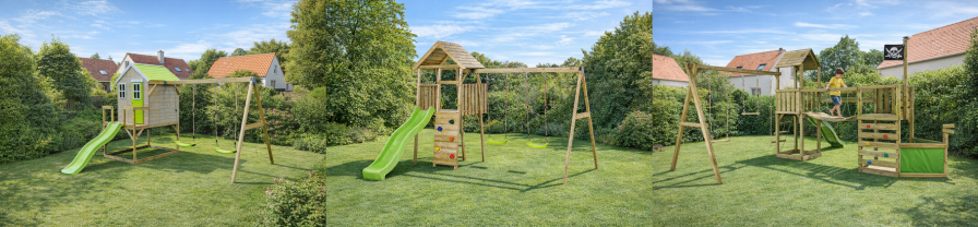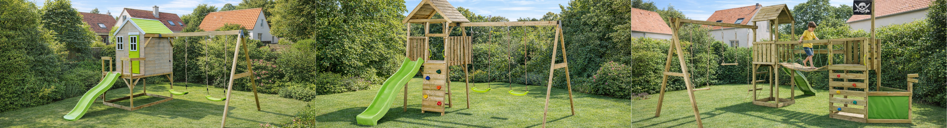 - Pour un jardin de taille moyenne, une aire de jeux avec toboggan et un portique complémentaire offrent un bon équilibre entre activités et encombrement.