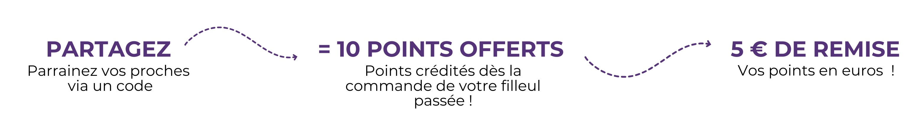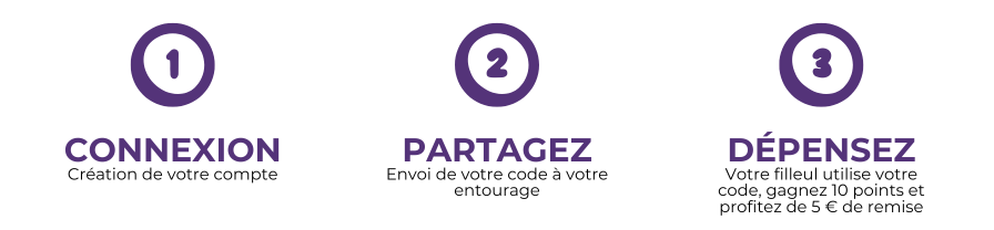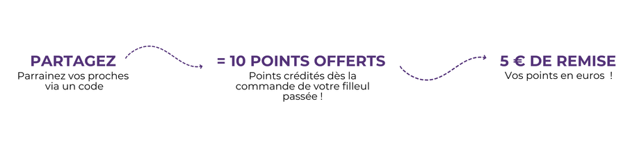 Dès que votre filleul utilise votre code lors de son premier achat, vous êtes crédités de 10 points sur votre compte client.