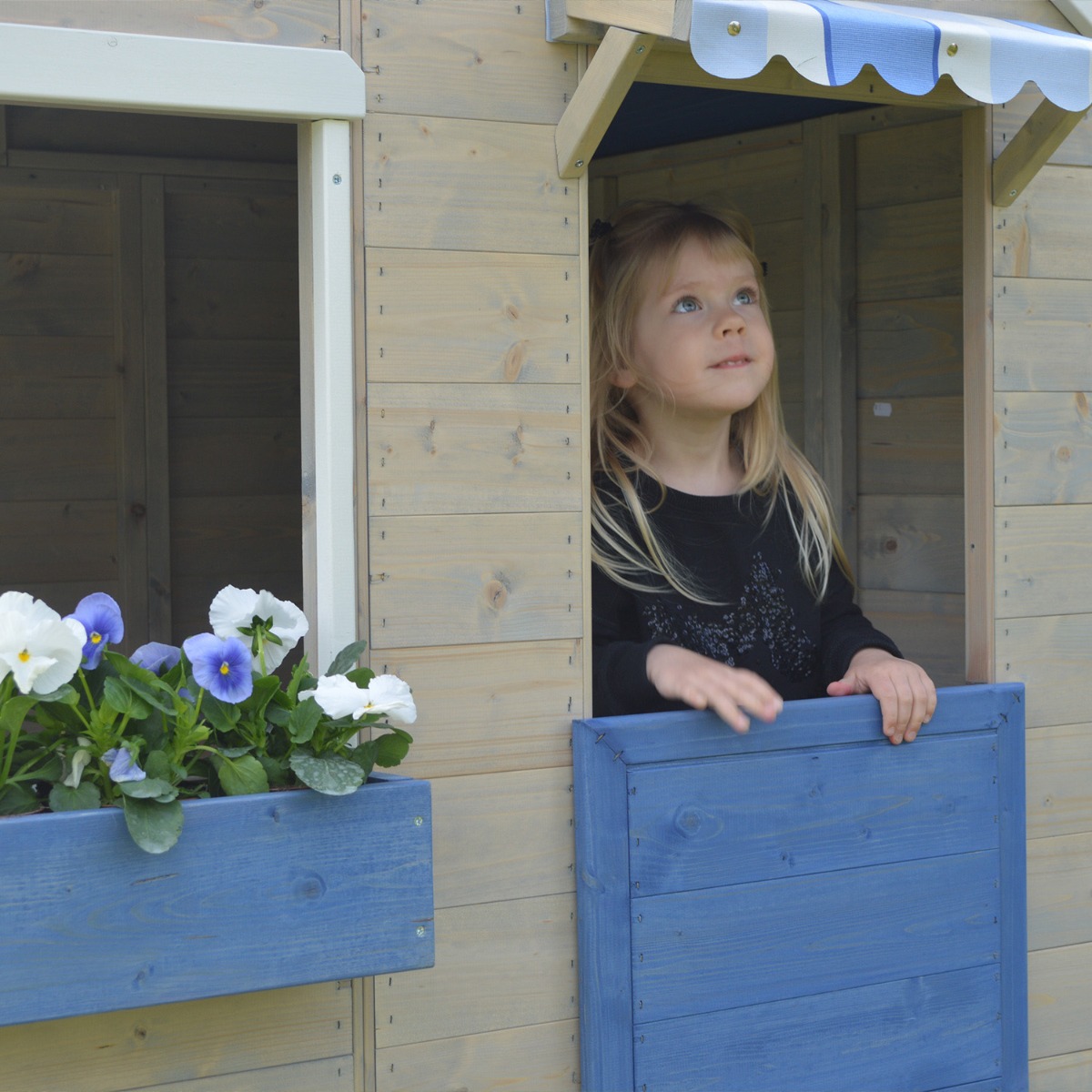 Pensée comme un véritable kiosque d’imitation, la cabane FLOWY séduit par son design original et ses accessoires pensés pour les jeux d’imitation. Elle est équipée d’un comptoir extérieur, d’une jardinière à fleurs et d’un paravent en tissu pour créer une ambiance cosy et chaleureuse.